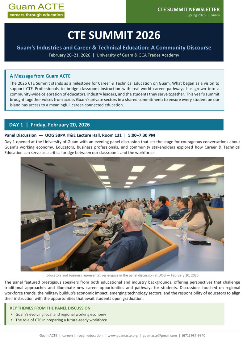To support effective integration of Career and Technical Education in schools in Guam and the western Pacific region that will improve student success in their career pathways.