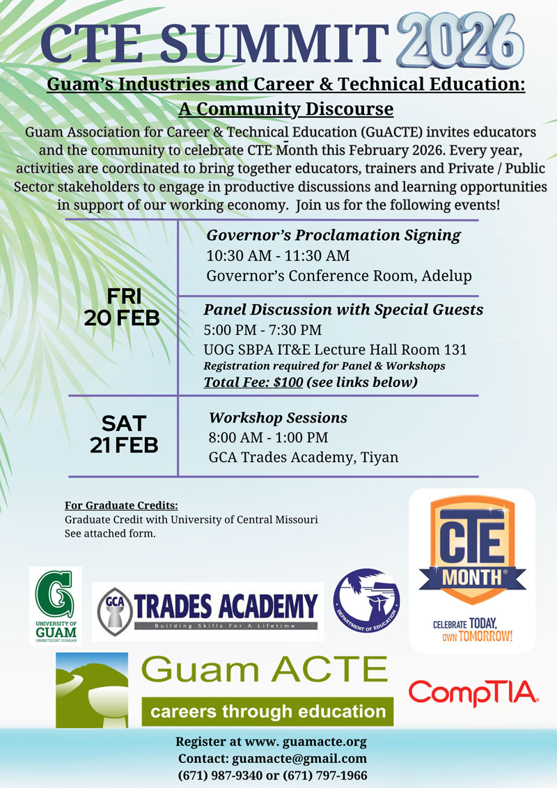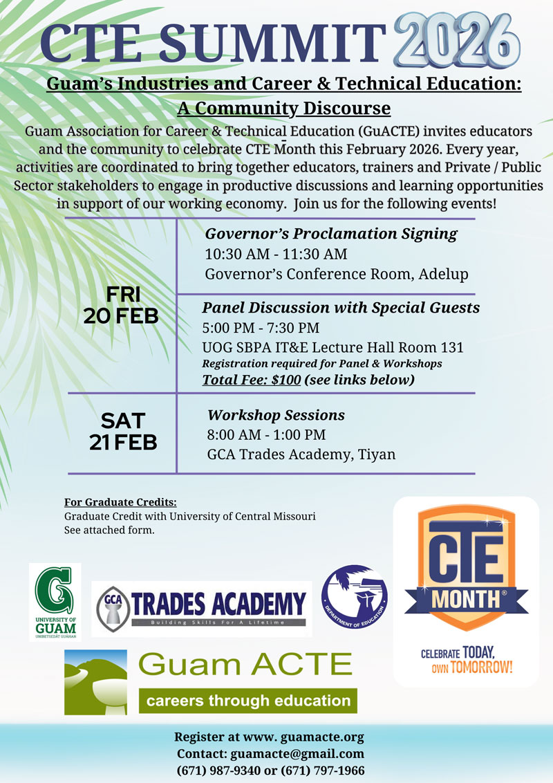To be the premier professional organization for educators in Guam and the Western Pacific, focused on student success through effective Career and Technical Education.